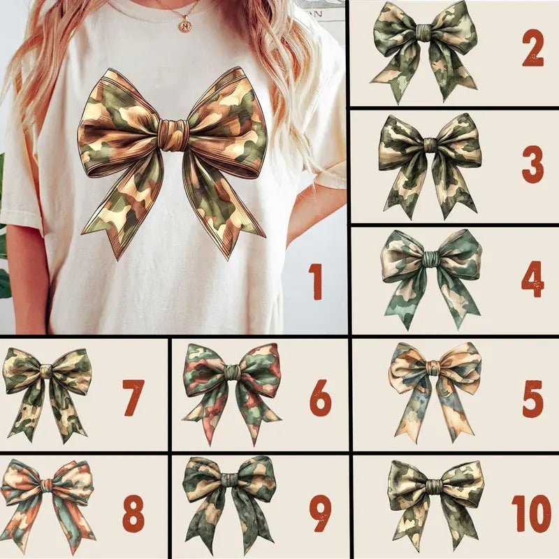 10 Camo Coquette Bow Bundle Shirt, Hunting Girl Shirt Design, Military bow Shirt, Full Sizes, Full Colors, Cotton Round Neck Tee, Womenswear, Lady Top Fabric