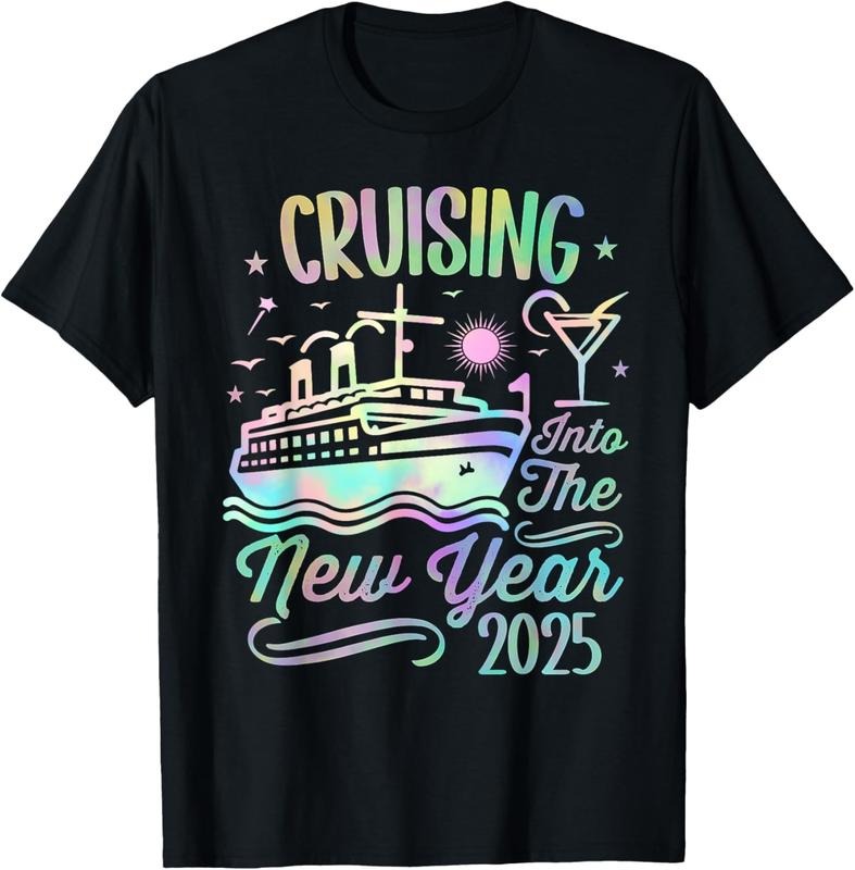 100% Cotton Cruising Into 2025 New Years Eve Party Favors Family Holiday T-Shirt