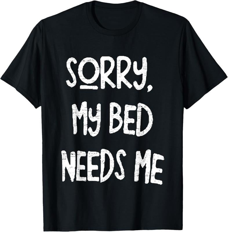 100% Cotton Vintage Retro Sorry My Bed Needs Me Funny T-Shirt