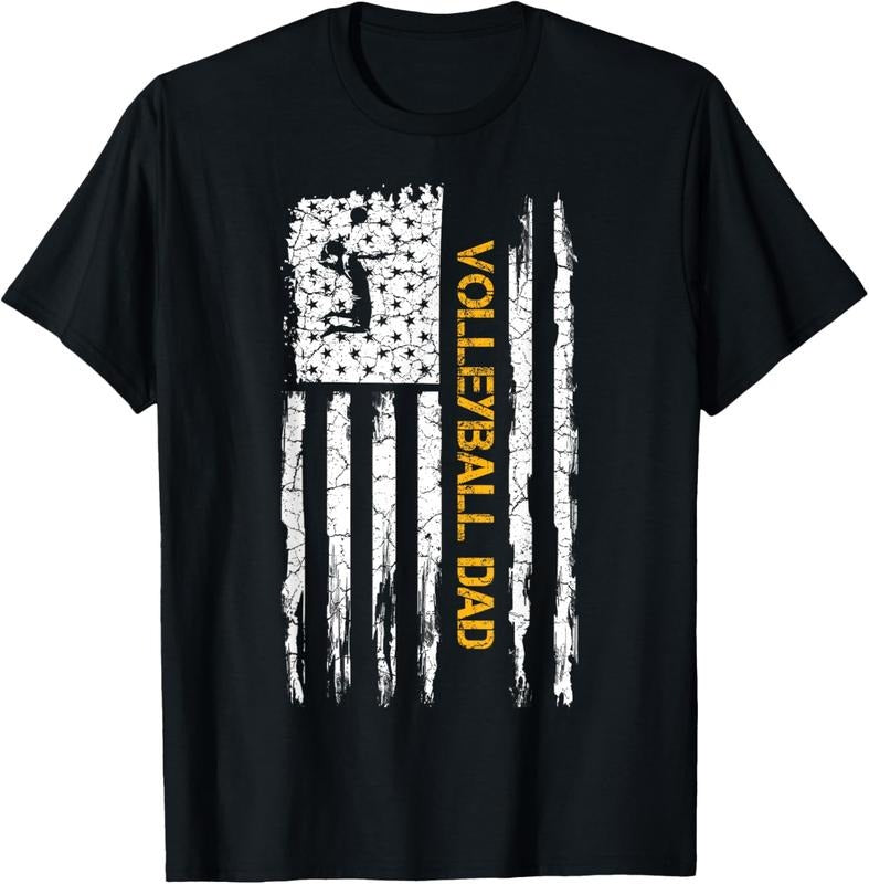 100% Cotton Vintage USA American Flag Proud Volleyball Dad Silhouette T-Shirt