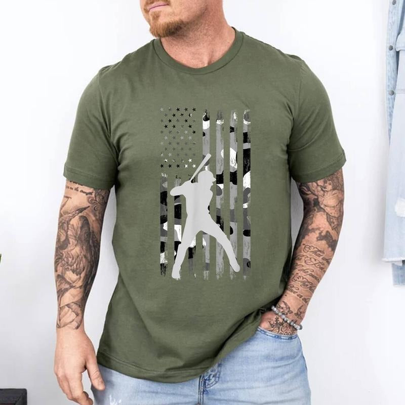Baseball Player American Flag USA Camo Patriotic Graphic T-Shirt | 100% Cotton Tee, Top Menswear