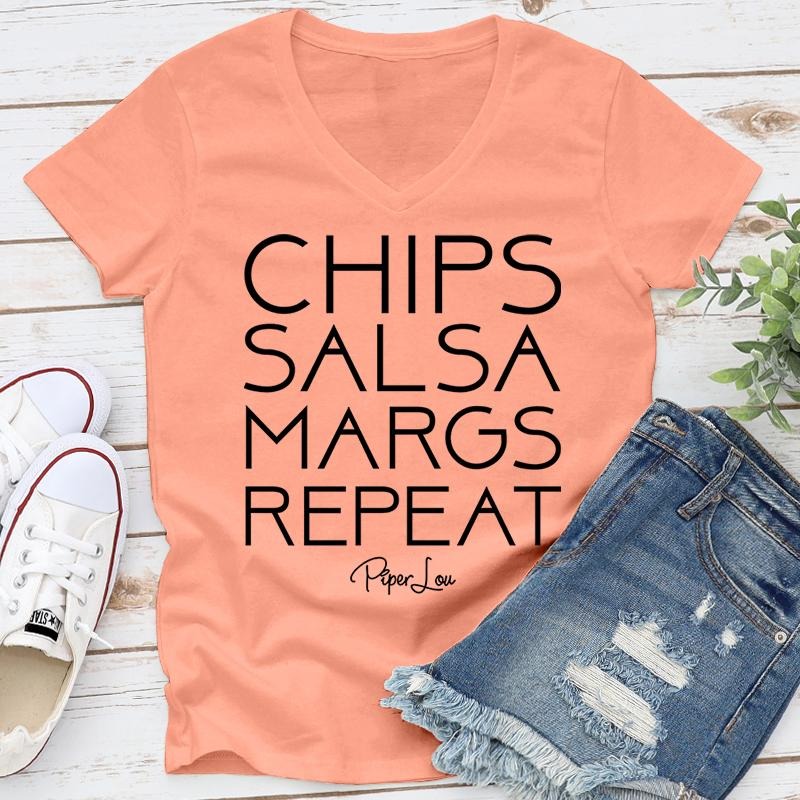 Chips Salsa Margs Repeat Apparel, Proudly Printed In The USA, Tee / Tank / V Neck Gray / White / Blue / Hot Pink / Orange, #sassy #cute #blackprint