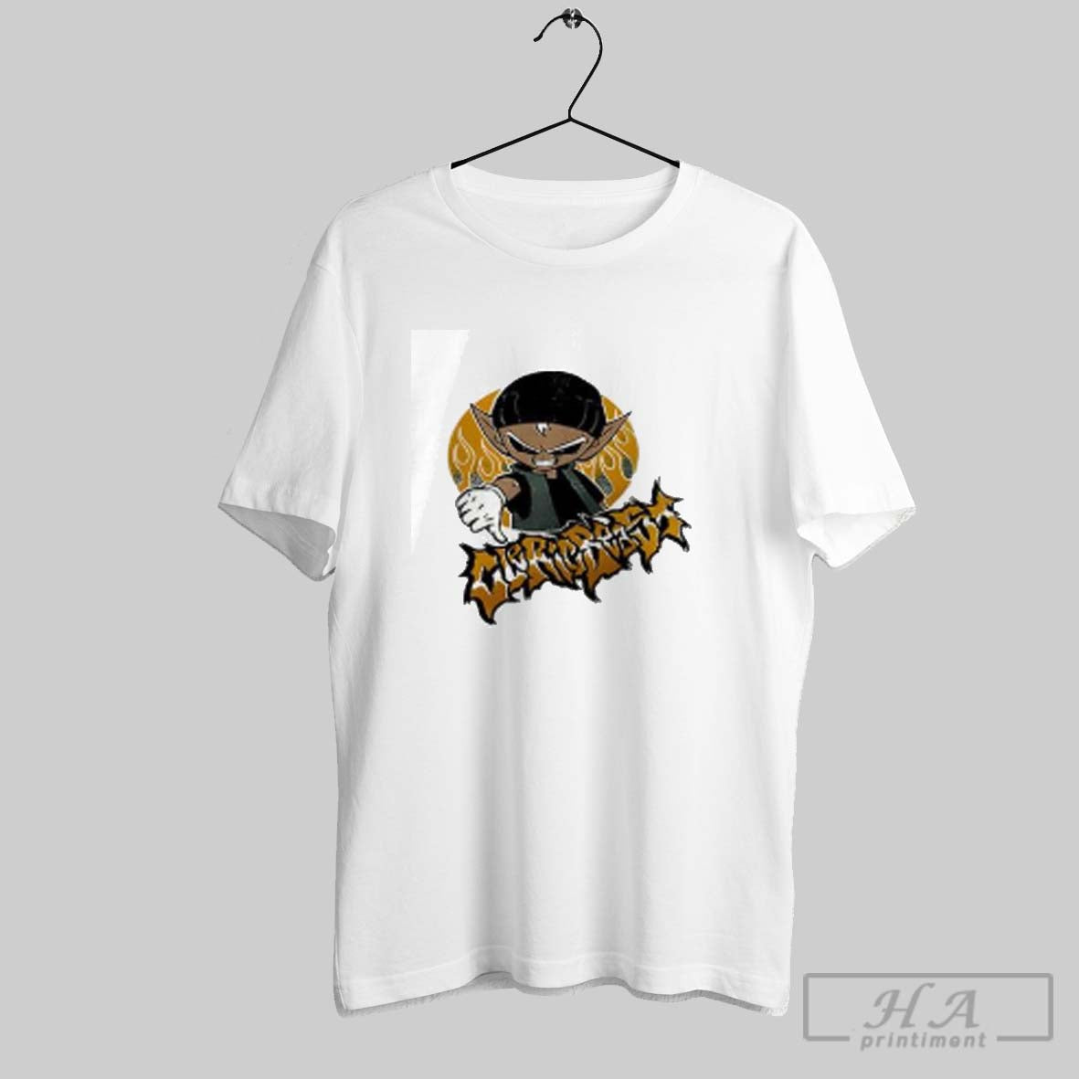 Cleric Beast Anime Dark Elf Thumbs Down Flame Background Graphic Shirt