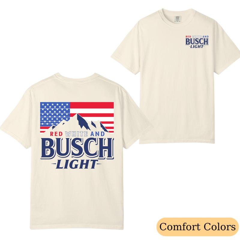 Comfort Colors Red White and Busch Light 2-Sided T-Shirt, Patriotic American Flag Beer Tee, Funny 4th of July Graphic Shirt, Casual Streetwear Top