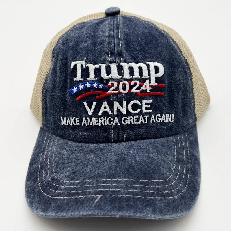 Donald Trump JD Vance 2024 Make America Great Again USA United States of America Embroidered Washed Trucker Baseball Cap Hat