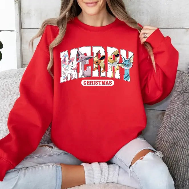 Eevee Evolutions Christmas Sweatshirt Hoodie, Pokemon Christmas Sweater, Eevee Xmas Sweater, Sylveon, umbreon, Espeon, Flareon Anime, Anime Sweatshirt, Cozy Gaming Apparel, Christmas Eevee Shirt, Eevee Evolutions Xmas Sweater, Pokemon Xmas Sweater