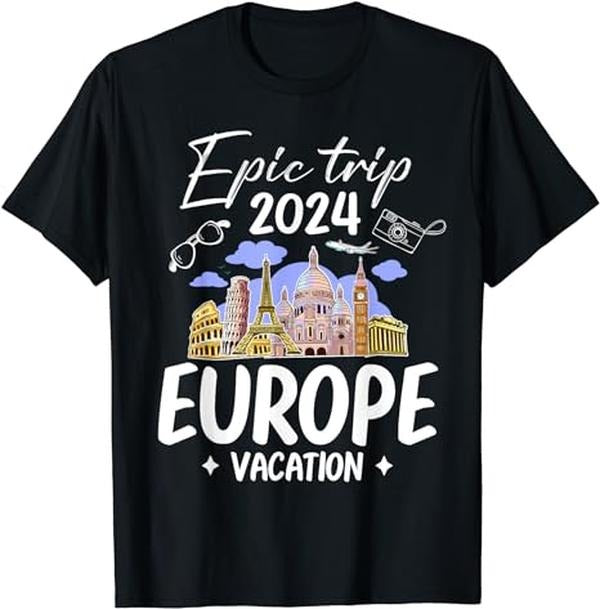 Funny Vacation Shirt, Epic Trip Europe Vacation 2024 Cool Reunion Family Holiday T-Shirt Menswear Casual Cotton