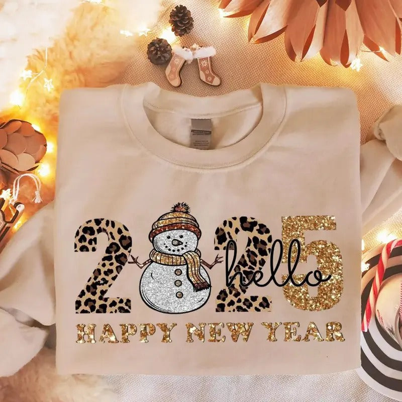 Happy New Year Sweatshirt Faux Glitter, Happy New Year 2025 Shirt, Girls New Year Trip Sweater, 2025 Holiday Sweatshirt, New Year Party Shirt, 2025 Shirt, Christmas Sweatshirt