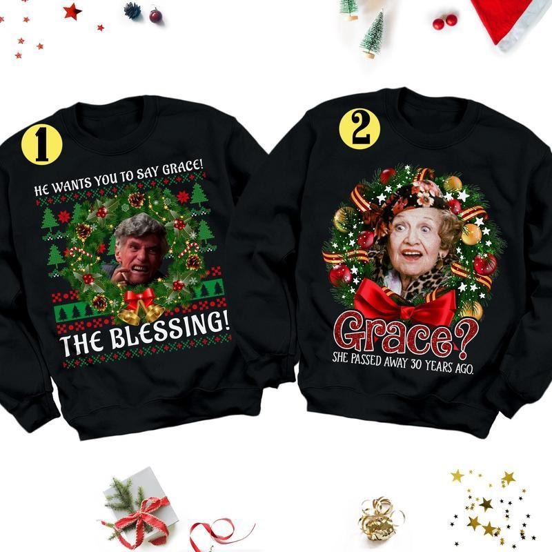 He Wants You To Say Grace Quotes Christmas Sweatshirt, Grace The Blessings Ugly Xmas Sweater, Xmas Movie Matching Couple Hoodie