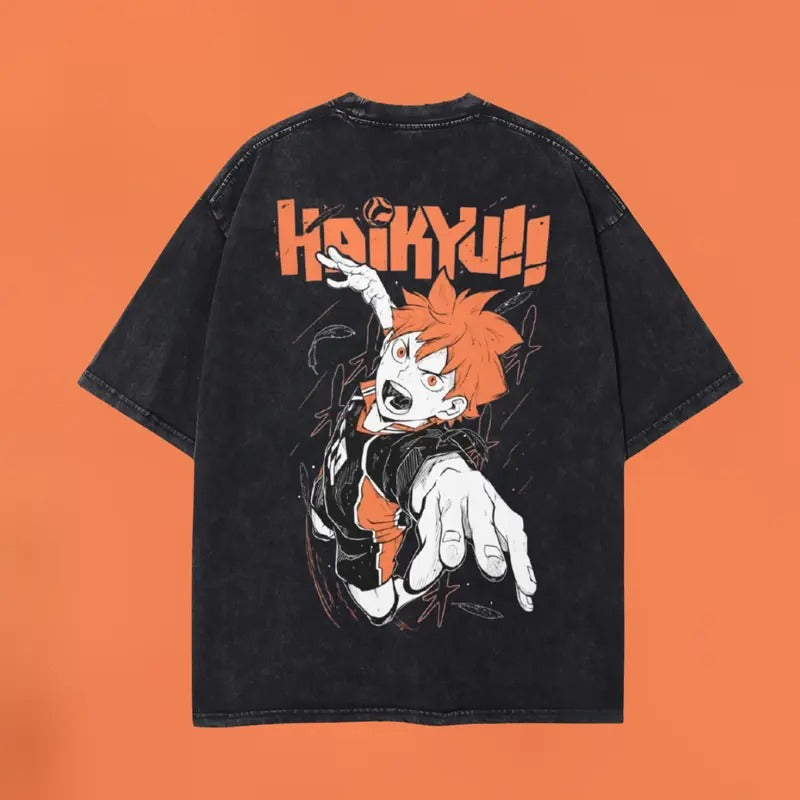 Hinata Shoyo Washed Oversized T-Shirt, Haikyuu Haikyu Anime Washed Heavy Cotton Special Graphic Tee