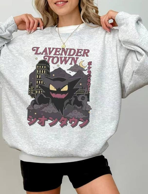 Lavender Town Sweatshirt, Gengar SWEATSHIRTS Dark Ghost Kaiju SWEATSHIRTS Japanese Anime Movie Film Nerd Gaming Novelty Funny Unisex Sweatshirts, hp fan, Gengar Halloween Shirt, Halloween Sweatshirt