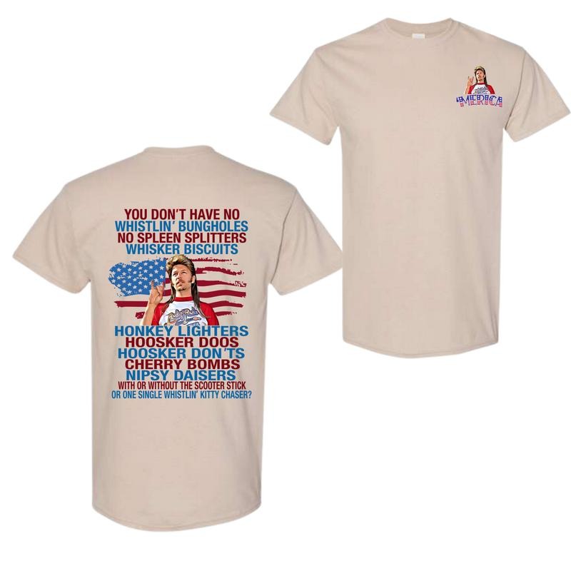 Merica t-shirt,you don't have no whistlin' bungholes,no spleen splitters whisker biscuits. Comfort Cotton, Full Color, Full Size Classic Menswear