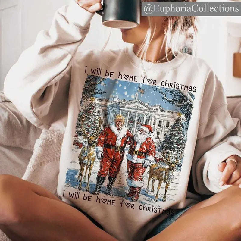#Trump I'll Be Home for Christmas Sweater, Hoodie, Tee, Cozy Warm #Trump Christmas T-Shirt , Global Trending Outfits
