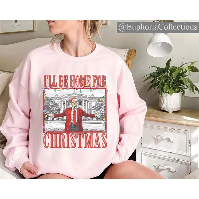 #Trump I'll Be Home for Christmas T-Shirt, Sweatshirt, Hoodie, Humorous #Trump Christmas, Christmas Republican Santa #Trump , Global Trending Outfits