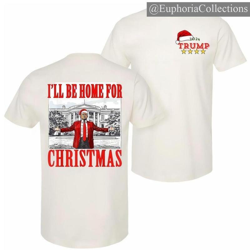 #Trump I'll Be Home for Christmas T-shirt, #Trump Christmas Shirt, Funny Xmas Tee for Men, for Women , Retro Chic Tee
