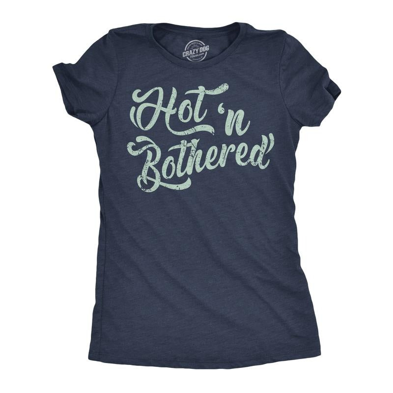 Womens Funny T Shirts Hot N Bothered Sarcastic Graphic Novelty Tee For Ladies Funny Womens T Shirts Cute Slimming Top Comfortable Soft Womenswear Funny Sarcastic Top Women's Novelty Tees Navy - Hot
