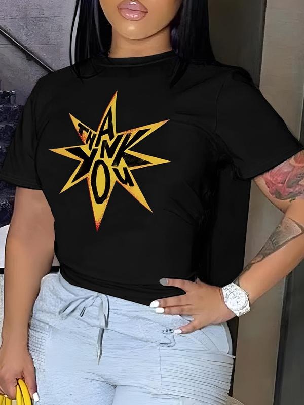 Women's Star Print Round Neck Tee, Fashion Casual Crew Neck T-shirt for Daily Holiday Vacation Outdoor Wear, Ladies Clothes for All Seasonsstyle{n002}2