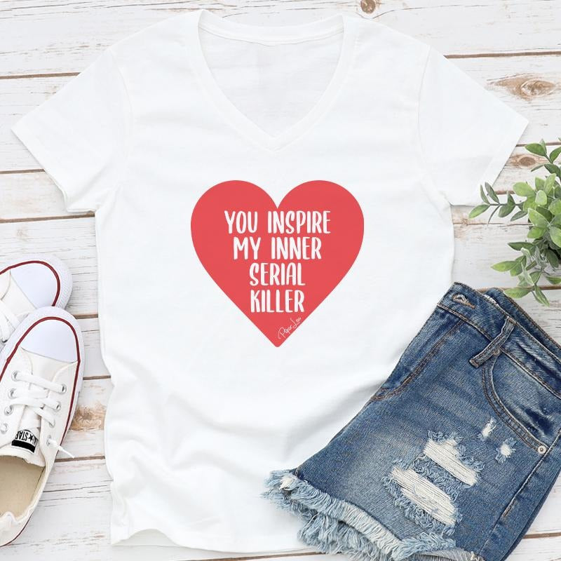 You Inspire My Inner Serial Killer Apparel, Proudly Printed In The USA, Tee / Tank / V Neck Gray / White / Blue / Hot Pink / Orange, #sassy #cute #colorprintstyle{n002}2
